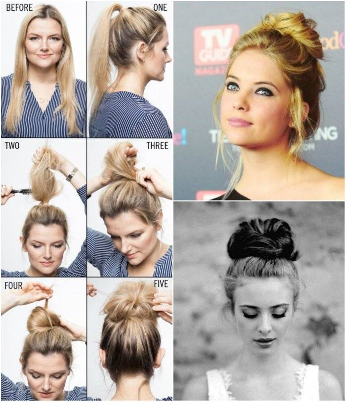 Прическа с пучком на средние волосы: пошаговое фото