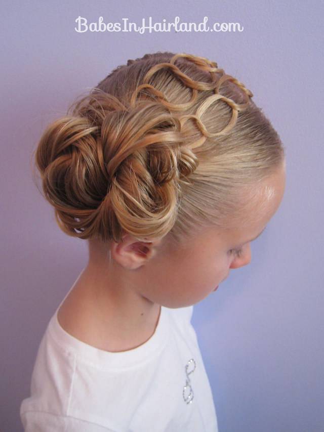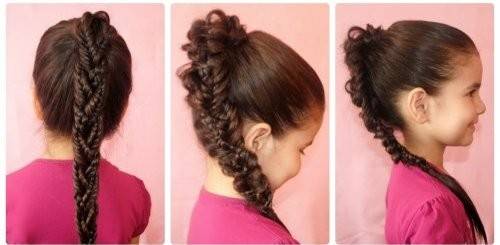 Вариант на все те случаи, когда хочется чего-то необычного, а времени на подготовку осталось мало. Такие детские прически для девочек (фото дает нам приблизительно оценить фронт работ) займут в пределах получаса.
