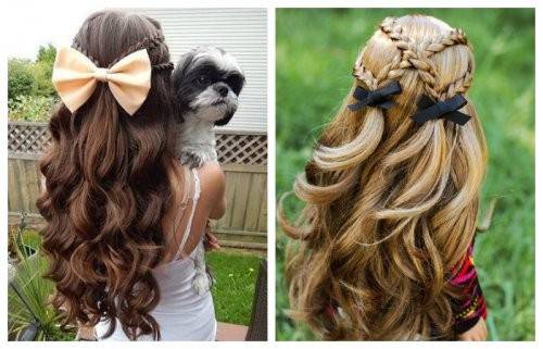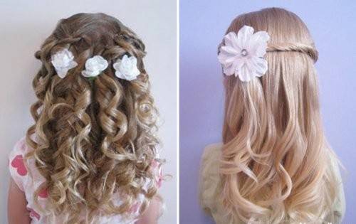 Девочке, представляется прекрасная возможность показать всю роскошь своих волос на празднике. Распустив на всю длину, можно слегка подкрутить пряди или сделать «кукольные локоны», украсить аксессуарами в виде цветов, блестящих заколок, венков. Красиво смотрятся распущенные волосы с челкой, выпрямленные, с оригинально зачесанным пробором.