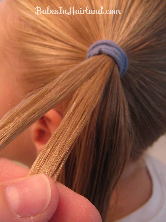 - Разделите хвост на 7-10 частей (смотрите по густоте волосе).