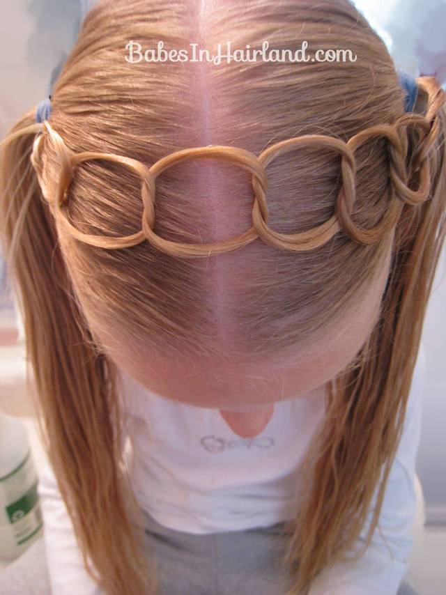 Обратитет внимание, что детские прически для девочек на длинные волосы можно повторить и для средней длины — просто цепочка будет состоять из двух половинок