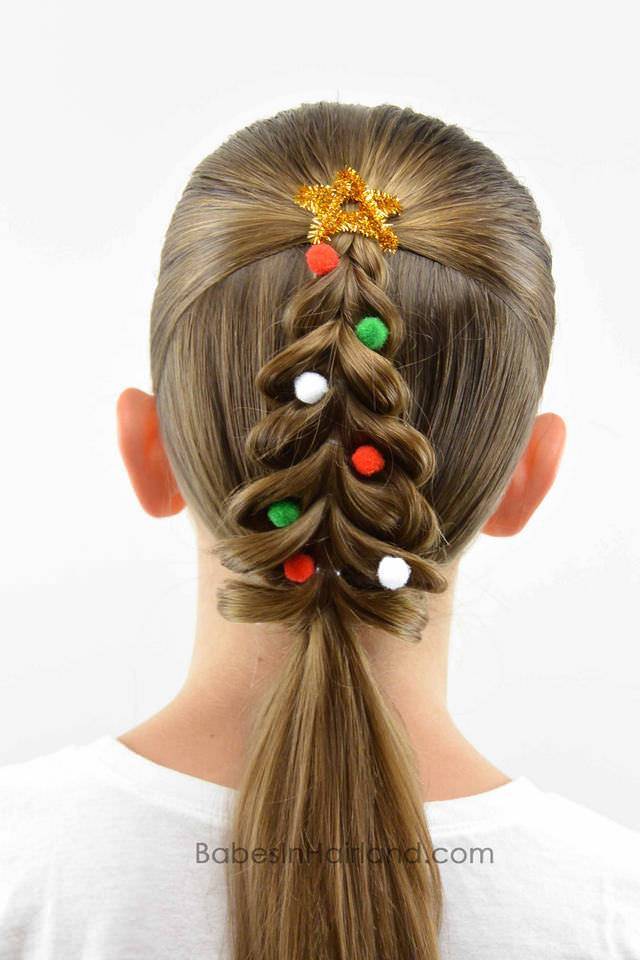 То же самое проделайте с другой частью волос. Концы завяжите яркими резинками.