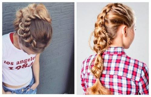 Данный вид укладки выглядит весьма оригинально и интересно. Такая прическа не только красива, но и удобна. Для девочек, обладательниц длинной шевелюры, которые хотят выбиваться из серой, скучной массы, эта прическа идеально подойдет. Для ее создания понадобятся шпильки и силиконовые резинки. Наклонив голову вниз, нужно тщательнейшим образом расчесать волосы. Выделив три пряди со стороны затылка, следует заплести косу французского типа ( плетение кос, состоящее из трех прядей). На границе затылочной части требуется закрепить прическу резинкой из силикона. Пряди, которые остались незадействованными, следует закрутить в пучок.