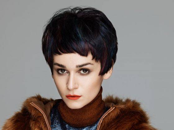 На коротких волосах изумительно смотрятся стрижки гарсон и пикси. Основным отличием является направление прядей: в первом случае они состригаются под одну линию, а во втором – торчат наружу.