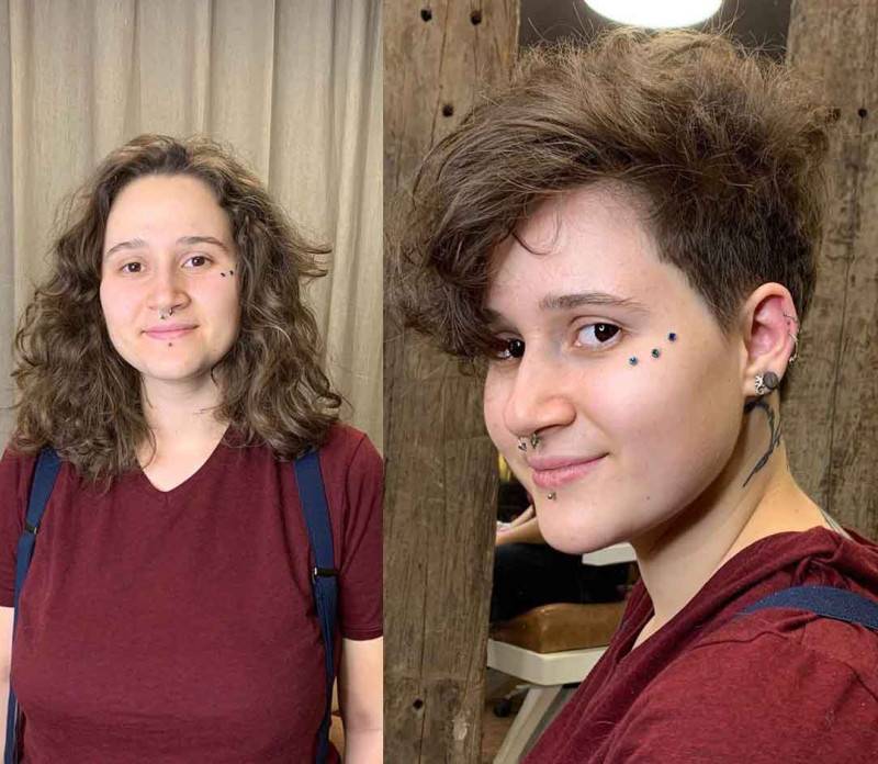 Когда длины волос практически нет, девушка может постоянно изменять цвет волос и экспериментировать. Например, короткая стрижка – это выход из положения для блондинки, так как осветленные пряди не успевают отрасти и обломаться от агрессивного окрашивания. Светлые волосы остаются ухоженными, что выглядит дорого. А для тех, кто не решается на полное окрашивание, можно попробовать мелирование: это освежит образ и позволит не испортить структуру основного объема волос.