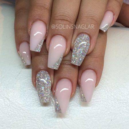необычный свадебный маникюр – таковым будет являться glasses nails (битое стекло), металлический дизайн который впишется в образ современной невесты в необычном свадебном платье.