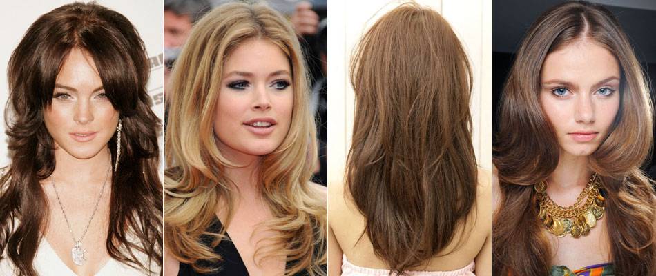 Для длинных волос самым удачным вариантом считается рваный или асимметричный каскад. Контрольный слой стрижки должен уходить за подбородок, градуировка должна быть неравномерной по всей длине волос. Каскад можно дополнить челкой, рваной, ниже бровей или удлиненной, боковым пробором плавно втекающей в общую массу волос.