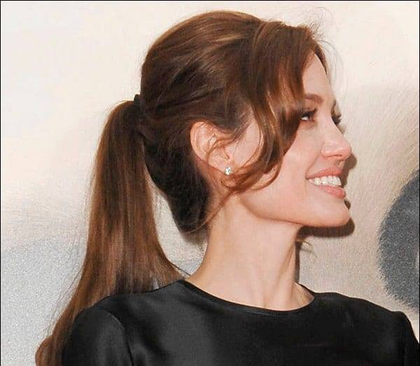 Несмотря на приверженность выбранному стилю, Анджелина нередко меняла прически для выхода в свет. Например, для премьеры фильма «Малефисента» (2014) голливудская дива сделала гладкий конский хвост.
