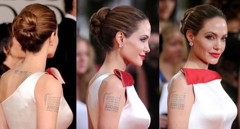 Примерно с 2004 года одной из узнаваемых укладок Анджелины Джоли становится высокий пучок.