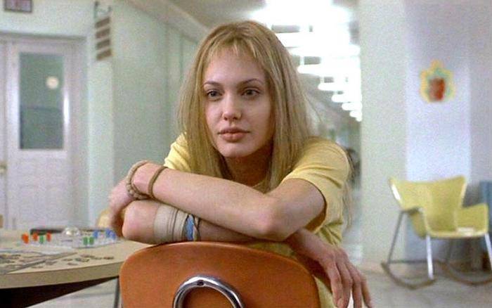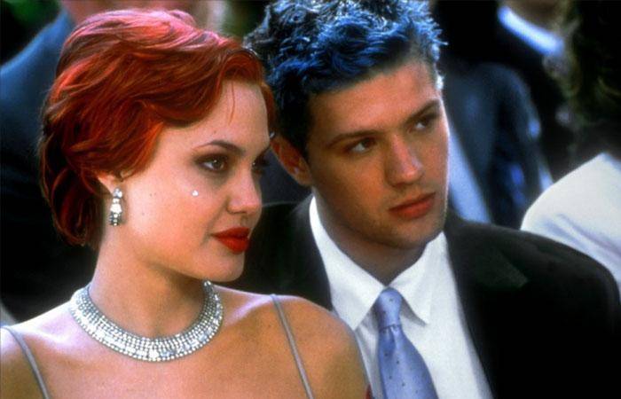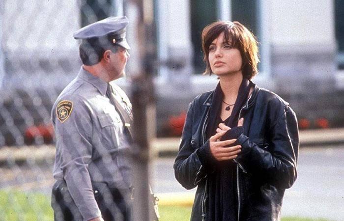 В 1999 году наступает звездный час Анджелины Джоли – фильм «Прерванная жизнь» принес ей популярность и сразу несколько наград, включая Оскар. Здесь Джоли блондинка с короткой челкой.