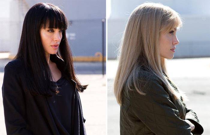 2010-й – год выхода сразу двух заметных в биографии Анджелины фильмов. В ленте «Солт» она сыграла агентов ЦРУ и КГБ, для перевоплощения в которых стилисты подобрали актрисе 2 образа: блондинки и брюнетки с челкой.
