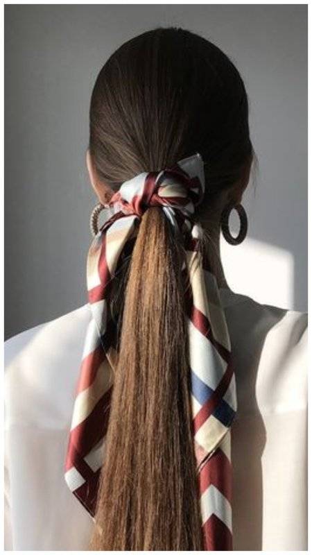 Легкая прическа, которая летом 2021 была одной из самых популярных отлично впишется в школьный образ. Платочек стоит выбрать под цвет формы, чтобы образ выглядел гармонично.