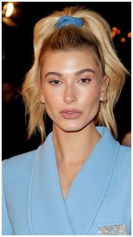 В этом году невероятную популярность обрели, забытые лет 10 назад, огромные бархатные или тряпичные резинки. Собрать с их помощью можно хвост, пучок, мальвинку. К примеру Хейли Бибер такую прическу дополняет крупными металлическими серьгами. Если в школе украшения не запрещены, последуйте ее примеру, это выглядит стильно!