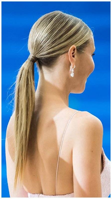 Классический высокий хвост будет уместен даже на линейке, посвященной празднику 1 сентября. Особенно эффектно будет смотреться вариант с «закрытой резинкой», боковой косой по голове, а также асимметричный хвост. Следуя современным тенденциям, можно дополнить прическу начесом.