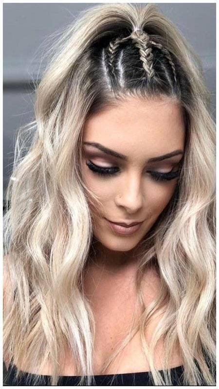 Пара тонких косичек в зоне челки или ушей сделает образ с распущенными волосами легким и романтичным. Макияж при этом должен быть в коричневых тонах или нюдовый. Ретро-стрелки не подойдут.