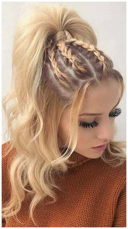 Хотя это звучит банально, но именно хвост возглавляет тройку лидеров модных причесок 2019 года. Особенность такой укладки заключается в небрежности. Истоки этого стиля уходят в далекие 80-е. Для создания эксцентричного хвоста обязательно делают начес на затылке и максимально его поднимают. Челку или несколько прядей вытягивают, чтобы придать старшекласснице некой романтичности.