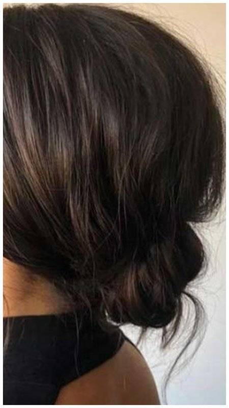 Любимая прическа Меган Марк идеально подходит для школы. Причем ее могут делать, как ученицы старших классов, так и учителя. Для этого нужно собрать волосы в низкий хвостик, а затем зафиксировать шпильками. Секрет идеального пучка Меган в предварительной накрутке волос на плойку.