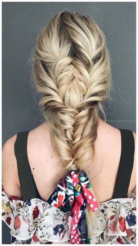 Очень интересно смотрятся тонкие косички, собранные в хвост, объемное плетение по всей окружности головы, ультрамодный рыбий хвост, а также французская коса.