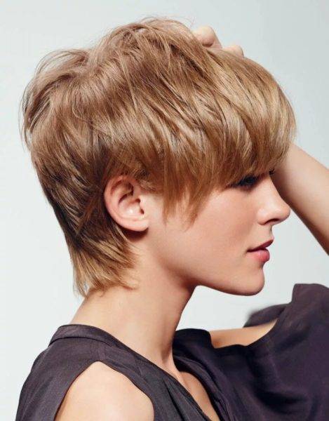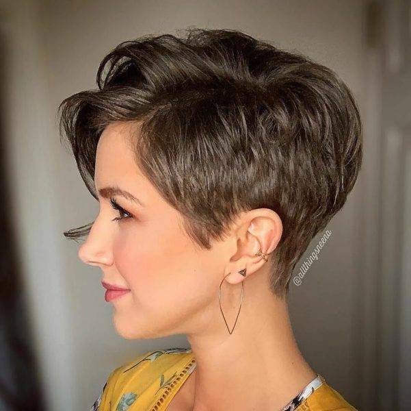 Эта самая короткая женская стрижка, обычно выполняется со рваной челкой, которая может быть уложена набок. Ее можно сделать объемной и необычной, если применить помаду для локонов, она к тому же сделает прядки шелковистыми с блестящим переливом.