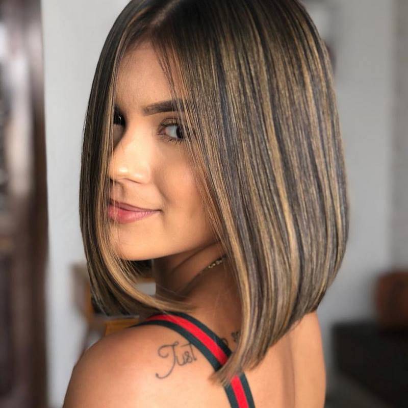 Стрижку можно выполнить четкими прямыми линиями, и тогда вы будете, как Клеопатра. В этом случае остановитесь на темных оттенках или мягком омбре.