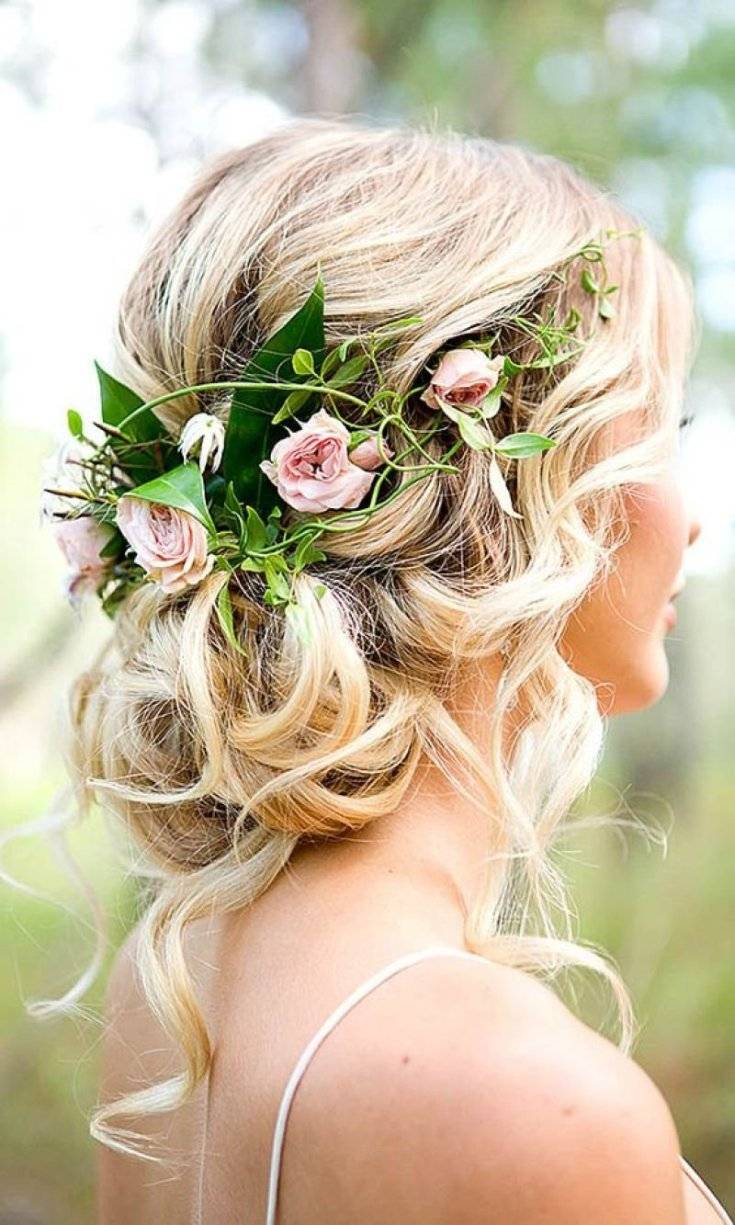 - Цветочные украшения. Цветочные аксессуары придают легкость и воздушность вашей укладке. Цветочная веночка, заколки с цветами или ободок с тканевыми цветочками — выбор за вами.