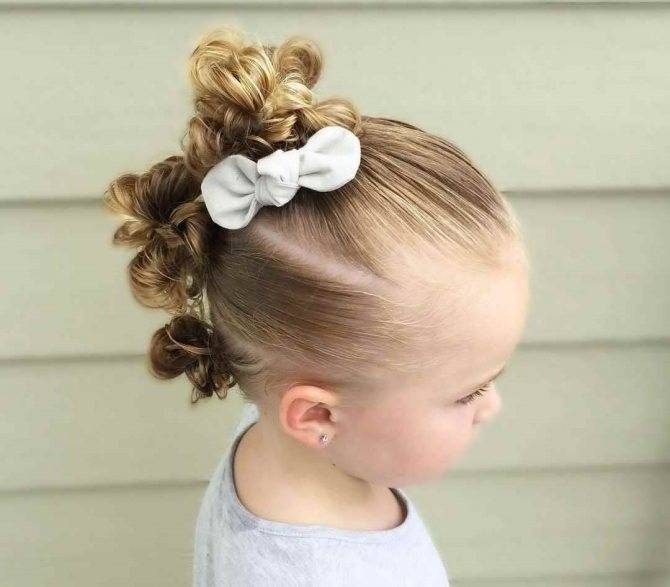 Такой прической может стать плетение с необычными проборами или бант из собственных прядей. Она подчеркнет игривый и веселый характер своей обладательницы. Выбирайте подходящий вариант вместе с малышкой!