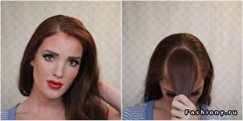 - Сначала волосы надо разделить при помощи бокового пробора.