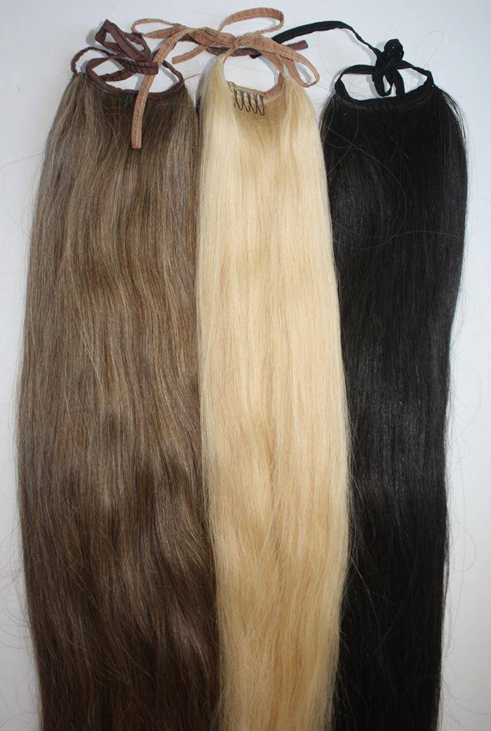 Они позволяют создать объем и увеличить длину волос. Такие шиньоны крепятся клипсами к натуральному хвосту. Часто используются в свадебных прическах. Для создания эффекта мелирования используют локоны разных оттенков.