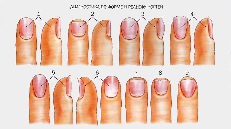 Обратите внимание на цвет ногтевой пластины и её форму. Если ногти имеют: