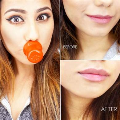 Иногда, стараясь получить желаемый эффект как можно скорее или не желая тратить лишние средства на присоску, девушки делают попытки увеличить объем губ с помощью подручных средств (например, силиконовой банки для массажа, рюмки, колпачка и т.д.), используя тот же принцип воздействия вакуумом.
