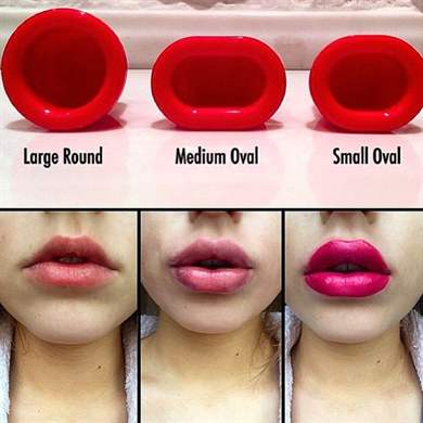 - Для тонких губ и достаточно широкого рта стоит выбрать приспособление со средним овалом. Кроме того, данное средство позволяет увеличивать объем отдельных участков губ – к примеру, верхнюю.