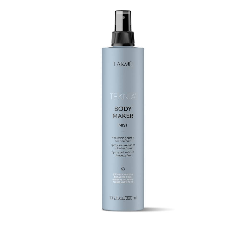 Легкий несмываемый спрей из «объемной» линейки Body Maker уплотняет и укрепляет волоски, делает их более упругими, придает им текстуру, возвращая им естественный пышный объем и создавая эффект эластичной фиксации. В составе миста есть органические рисовые и соевые микропротеины, обеспечивающие дополнительный уход, но при этом нет утяжеляющих ингредиентов, поэтому пряди остаются легкими и воздушными.