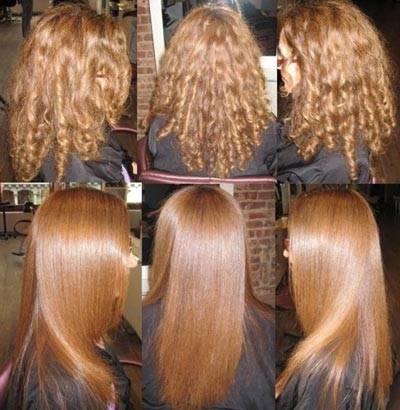 - Кудрявые/въющиеся – волосы становятся абсолютно прямыми, гладкими и послушными. Именно для этого типа локонов и была создана процедура.