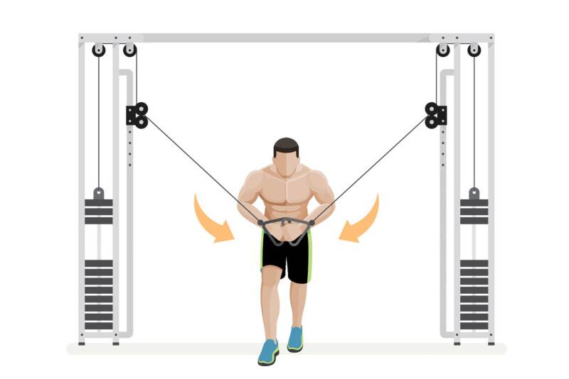 - Тяги верхнего блока — 2 подхода по 15 повторов в каждом.