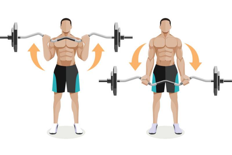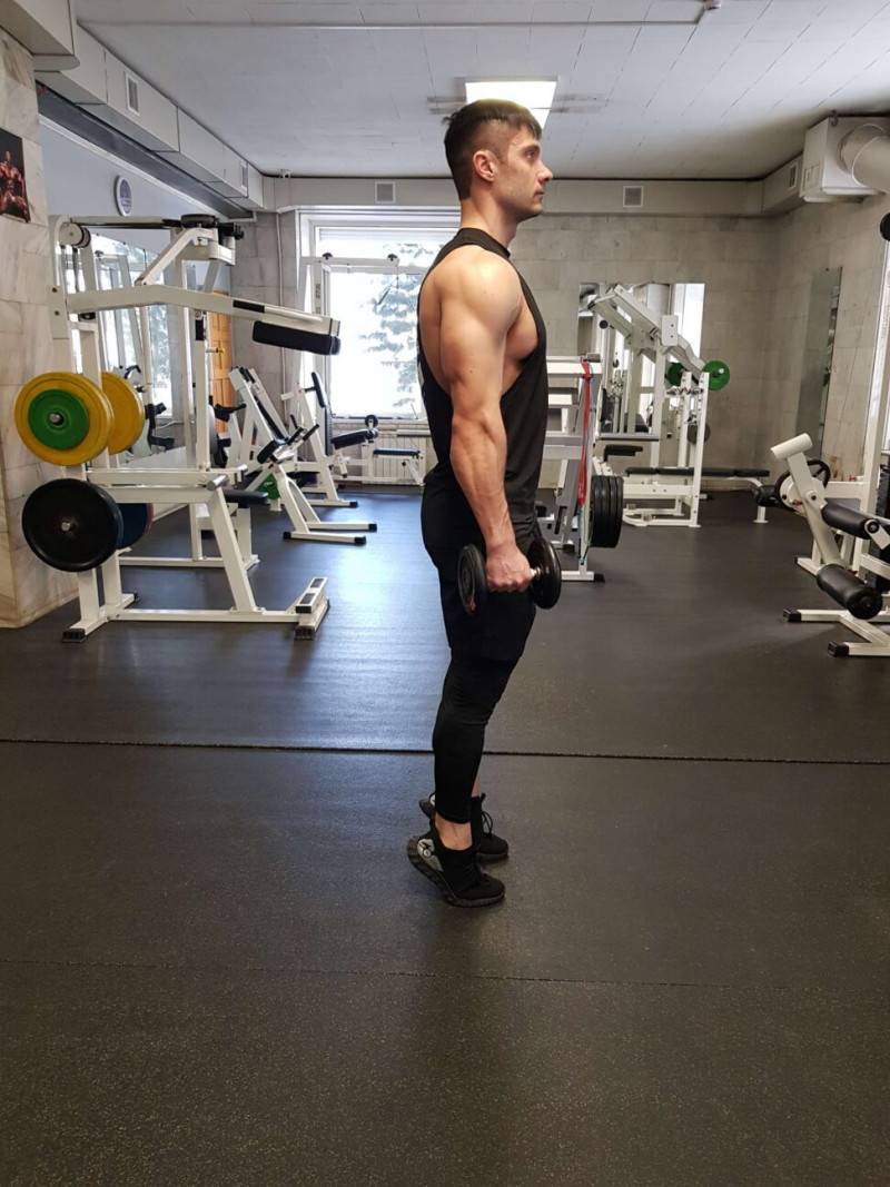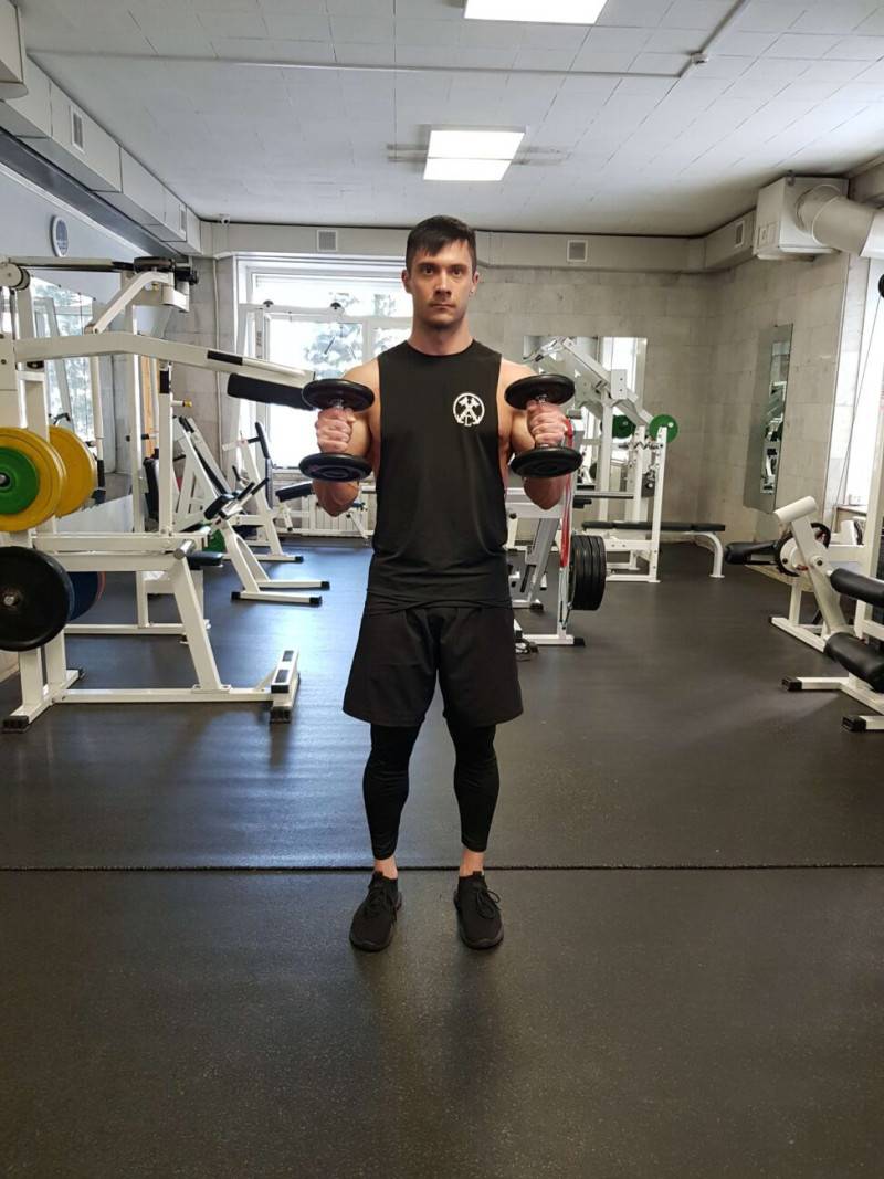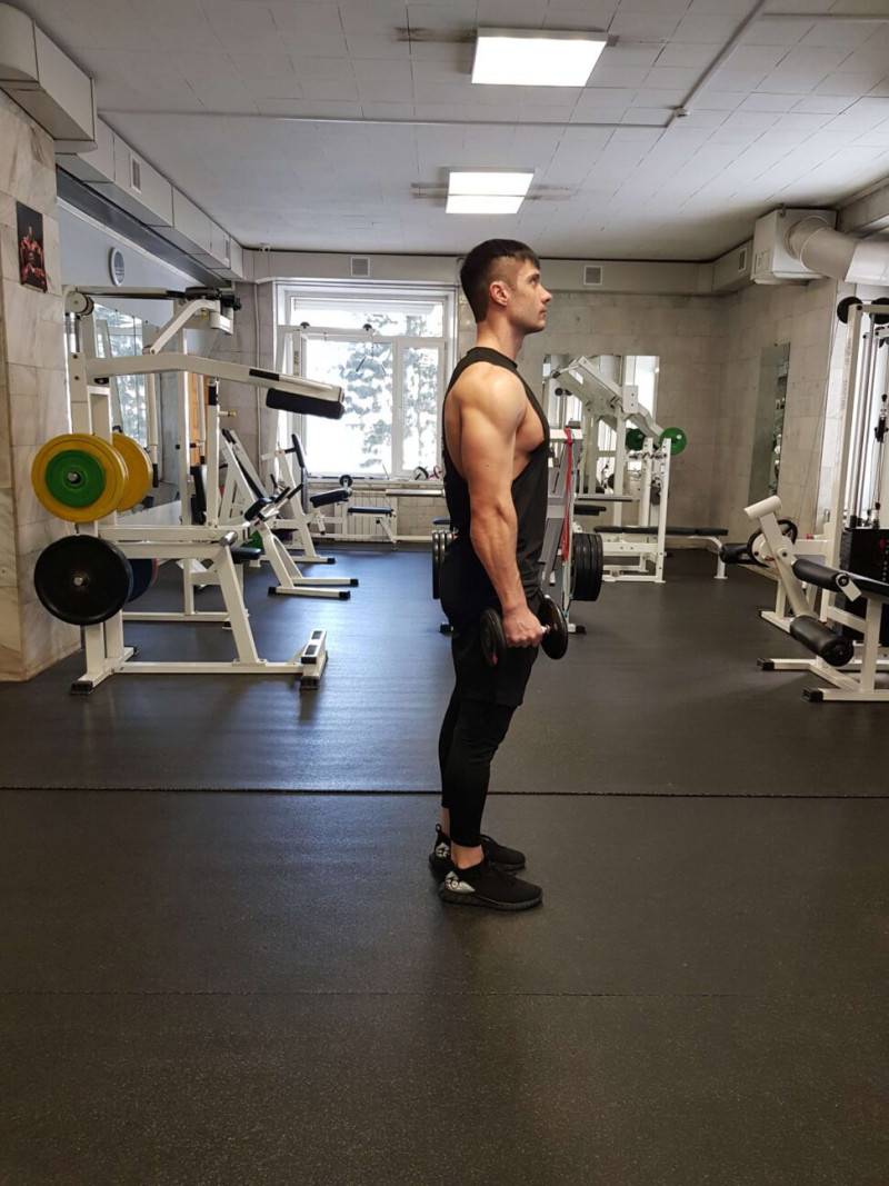 - Подъемы гантелей для бицепса — 2 подхода по 15 повторов в каждом.