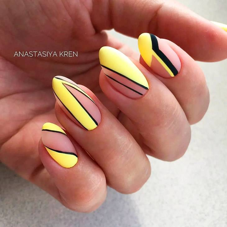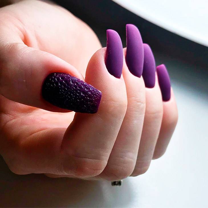 Что касается принтов, очень актуальны различные линии и геометрические формы, плавное перетекание цвета от почти черного к цветному тону, в форме волн. Это в принципе непритязательные и эффектные рисунки. Очень модно сочетать различные фактуры в одном дизайне. Довольно хорошо выглядят матовые оттенки и фактурные лаки с различными наполнителями.