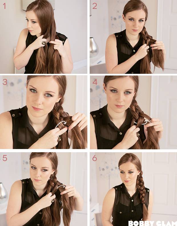 Плетение следует начинать, как в совершенно обычной косичке. Правая прядь перекидывается и ложится, левая же наоборот перекидывается и оказывается между центральной и крайней. Держать нужно очень крепко, чтобы пряди не распались.