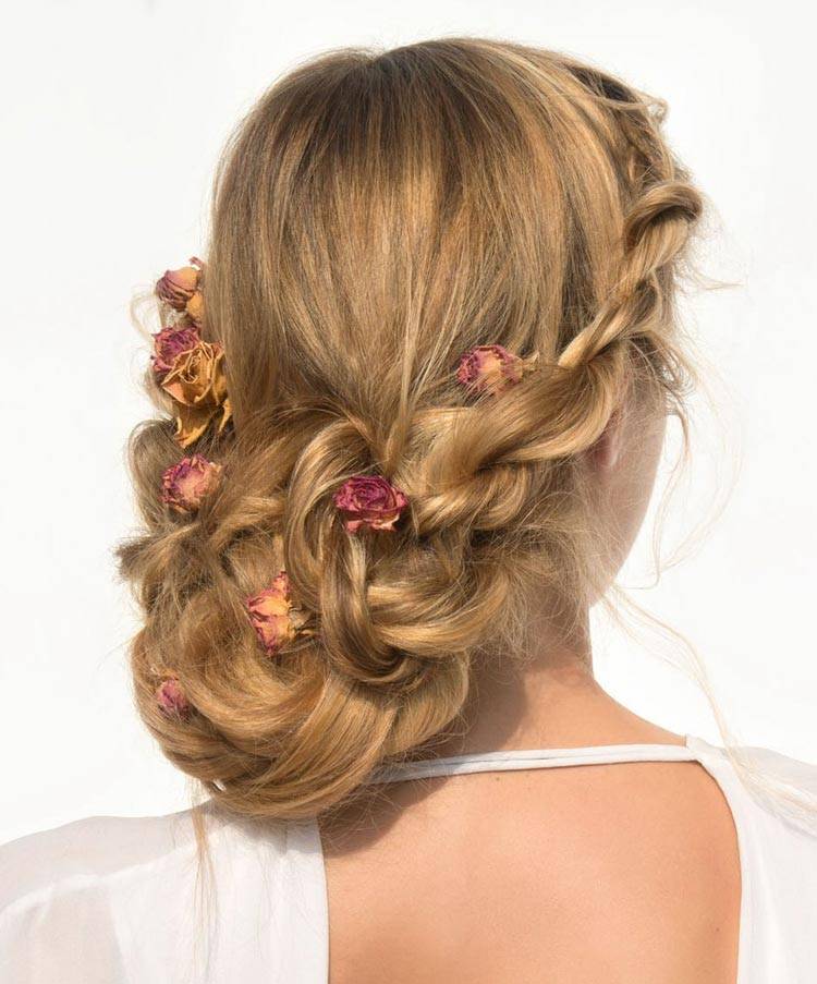 Существует множество вариантов выполнения торжественных укладок на основе кос.