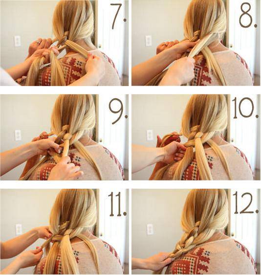 На фото ниже представлена подробная схема плетения, которая позволит без труда создать на длинных локонах оригинальную прическу.