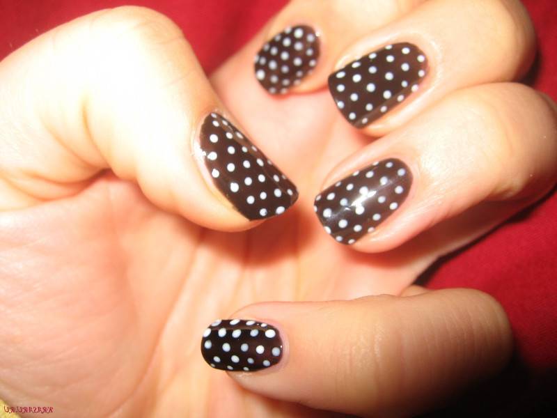 Самым простым рисунком являются точки, горошины и кружочки. Ими можно покрыть как весь ноготь, так и выстроить незамысловатый узор.