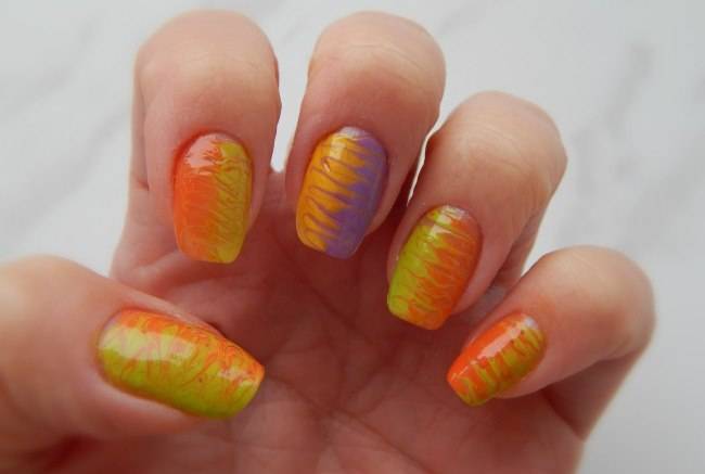 Необходимо знать, что для красивых, расплывчатых линий следует подбирать средства с определенной структурой. К примеру, идеальный рисунок никогда не получится при слишком жидком лаке.