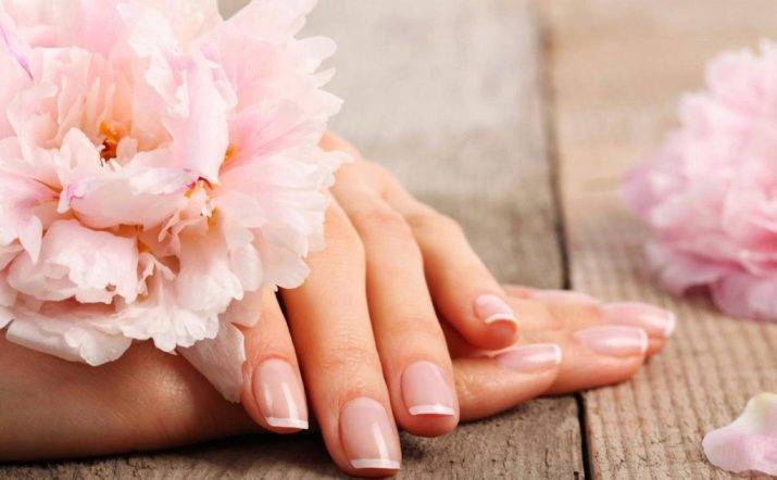 - Если захотелось французского маникюра, то нужно приобрести розовый тон лака и белый камуфлирующий;