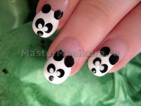 Красивые простые рисунки для ногтей получаются, если изображать мордочки различных животных. Это и забавно, и, опять-таки, не требует абсолютной точности выполнения. Милые панды, удивительные божьи коровки и смешные паучки, нарисованные домашних условиях, раскрасят серые будничные дни и создадут праздничное настроение.