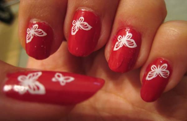 - Если белого лака будет не хватать на всю бабочку, иголкой аккуратно взять небольшое количество с кисточки и продолжить рисунок.