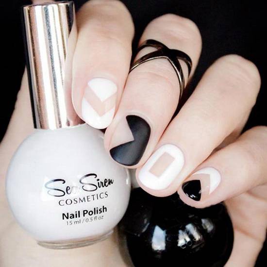 Геометрические фигуры на ногтях можно делать не только вручную, но и используя соответствующие трафареты. Их продают в специализированных магазинах или же вырезают из обычного скотча. Опытные ценители нейл-арта имеют достаточно терпения и аккуратности, поэтому используют для рисования узоров дотс.