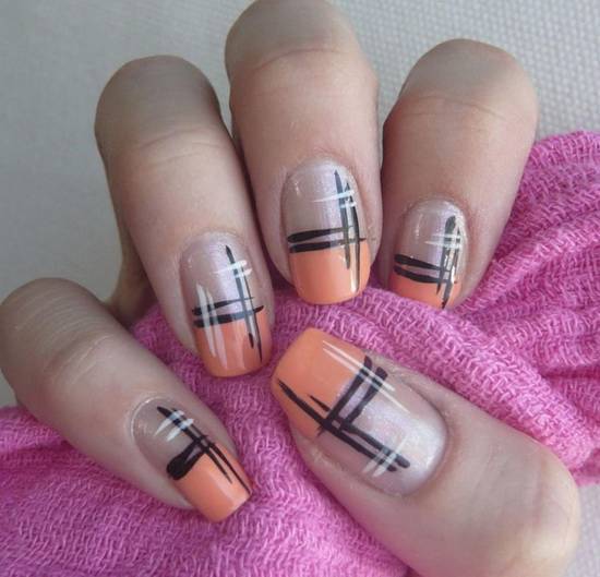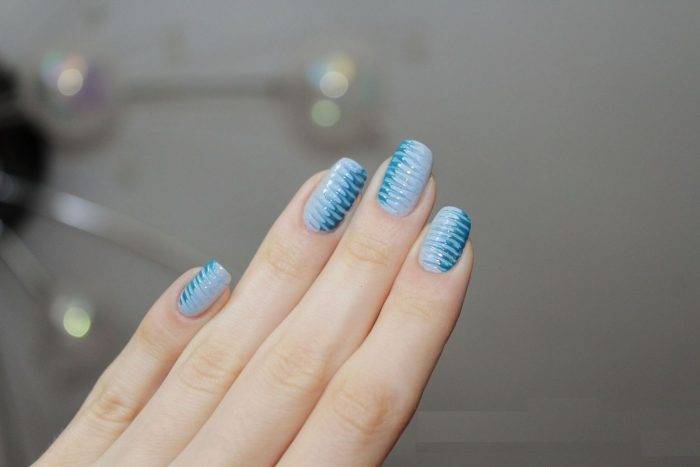Полоски, линии, зигзаги – это одни из самых простых рисунков на ногтях в домашних условиях. При аккуратном выполнении тонкие ровные или волнообразные линии выглядят очень оригинально. Наносить их можно контрастными цветами