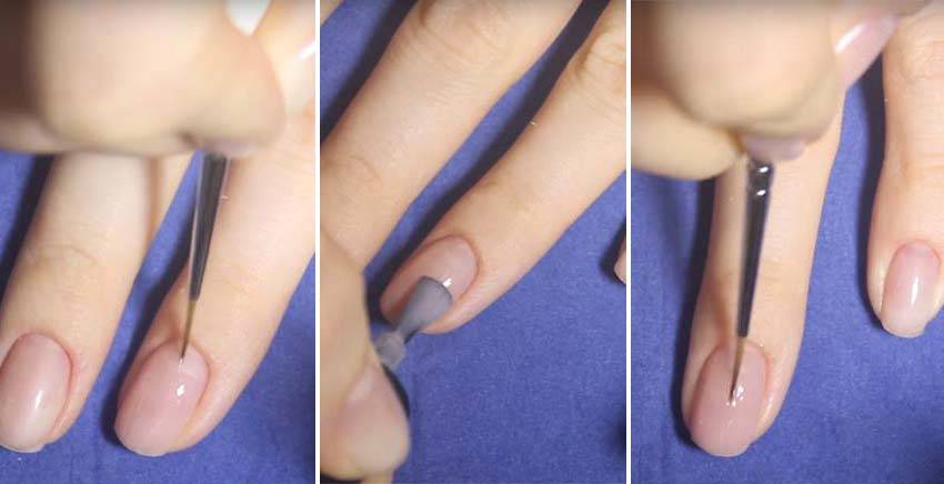 - Для этого вам необходимо накрасить ноготь сразу двумя цветами