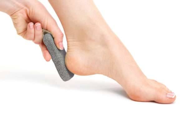 - через 24 часа повязку снять, а ноги хорошо распарить, с помощью пемзы и ножниц убрать размякший слой;