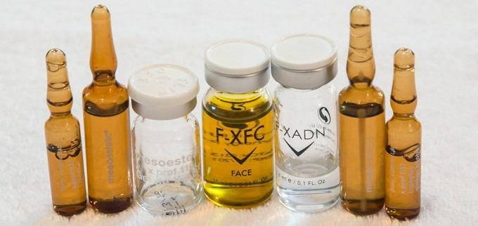 Препараты бывают животного и растительного происхождения, а также произведенные промышленным способом. Для процедур используются как готовые коктейли, так и составленные индивидуально под потребности клиента. Список компонентов, используемых косметологами, довольно внушительный: коллаген, эластин, гиалуроновая кислота, артишок, витамины, микроэлементы, белки, аминокислоты и др.