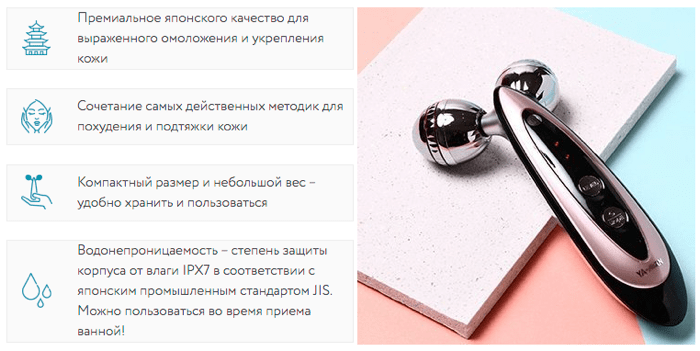 Имеет 6 функций, позволяющих моделировать овал лица, подтягивать и устранять дряблость кожи, корректировать второй подбородок: